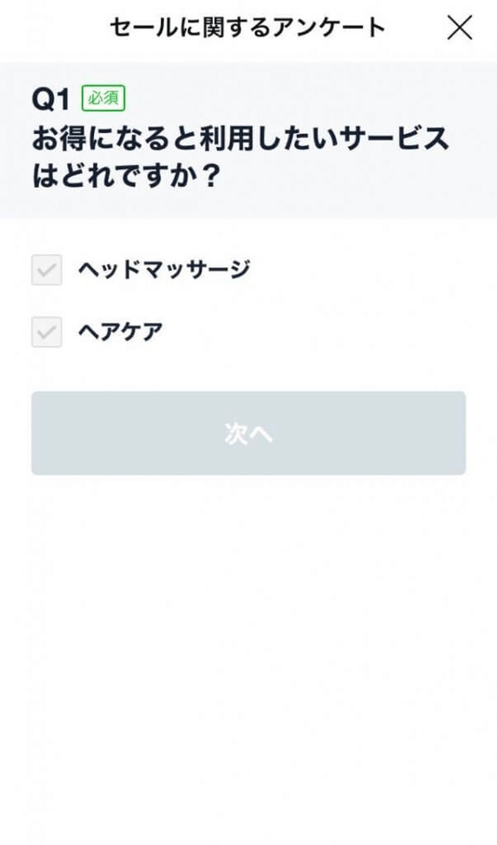 LINE公式アカウントのリサーチ機能を利用したアンケート例