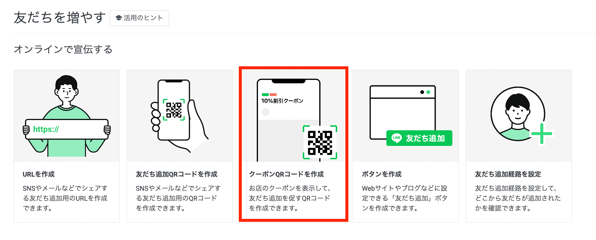 - ユーザーに友だち追加でクーポンがもらえることを伝える