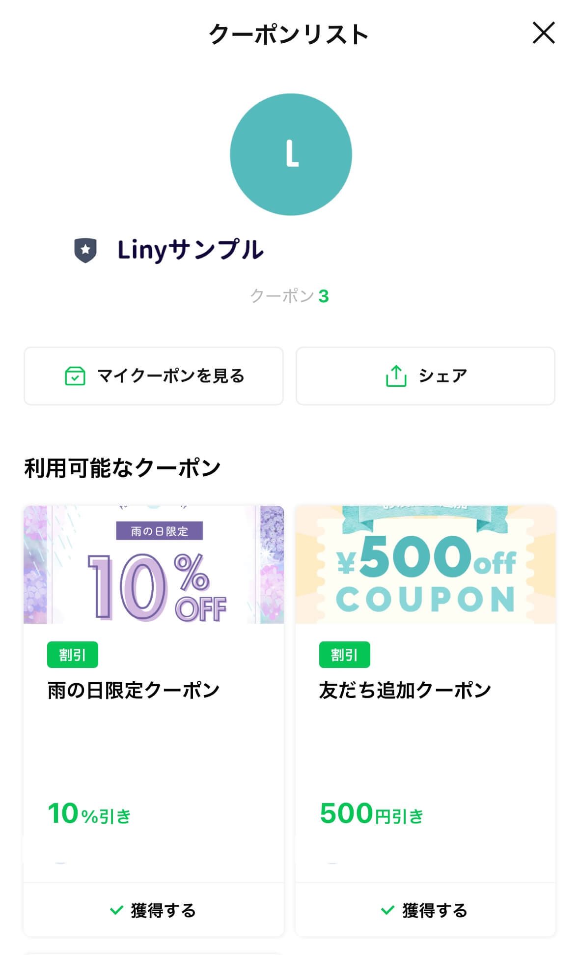 クーポンが作成できたらQRコードをダウンロードします。ユーザーがQRコードを読み込むと、クーポン(リスト)を確認することができます(* すでに友だち追加しているユーザーもクーポンリストを確認することができます)。