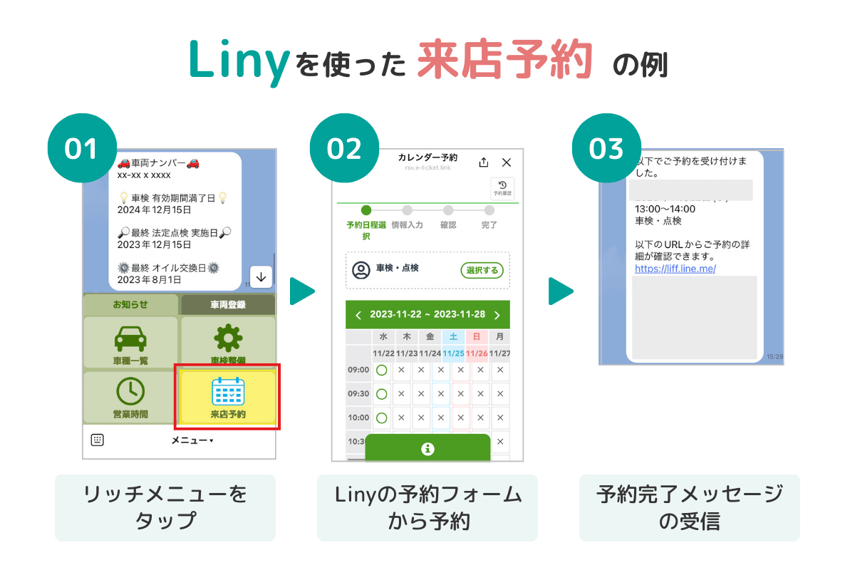 さらに、前日のリマインド配信、来場・来店後のフォローアップまでを自動化できます。