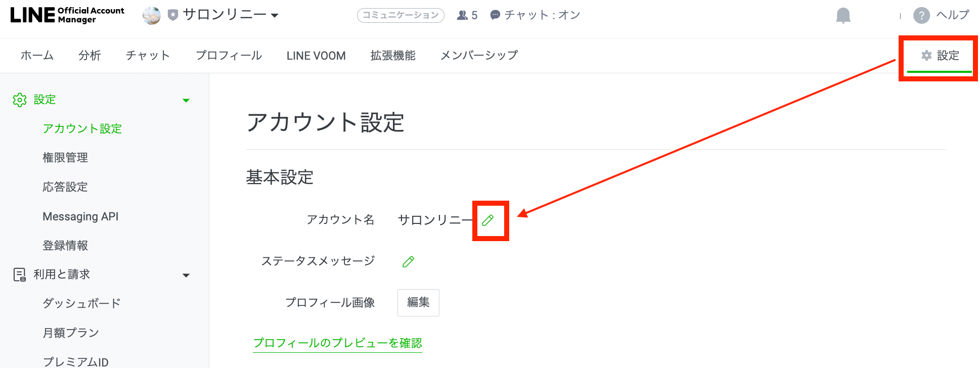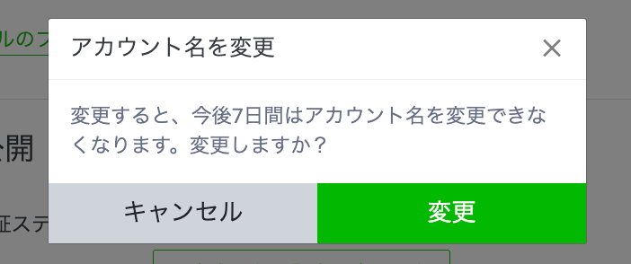 未認証アカウントの場合は、LINE公式アカウントの管理画面から、アカウント名の変更が可能です。