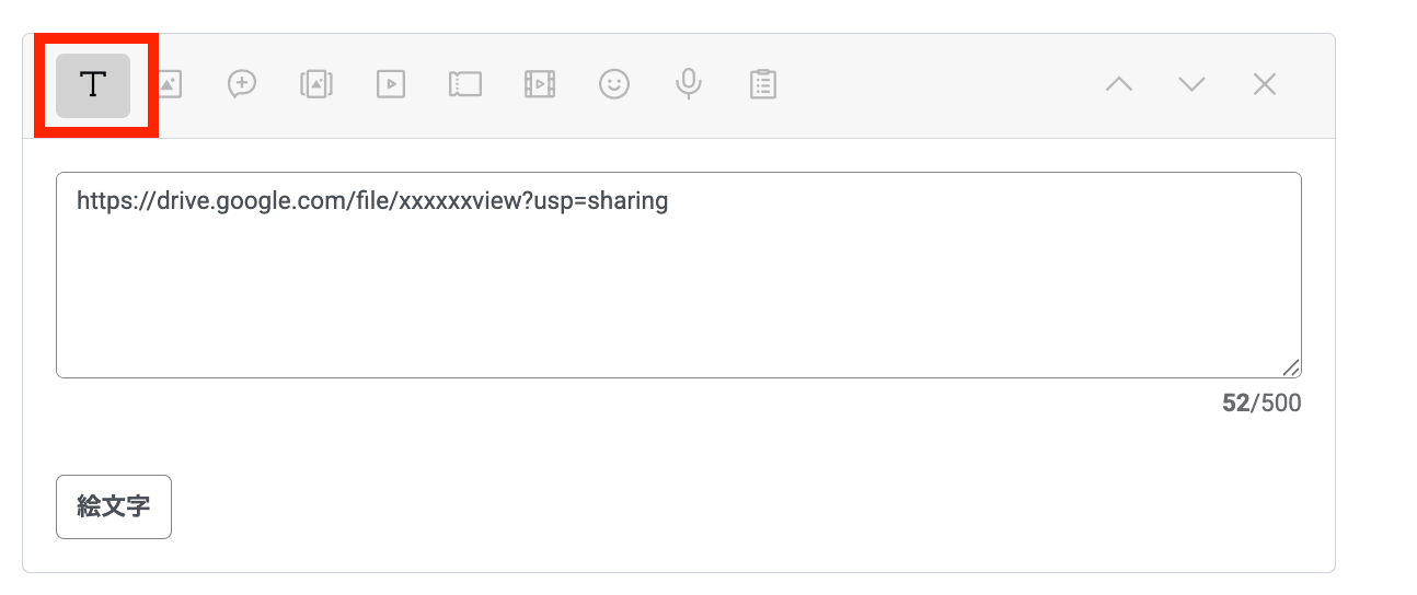 配信時は、LINE公式アカウントの「メッセージ配信」>「メッセージを作成」からテキストマークを選択し、共有リンクをメッセージ内に貼り付けます。