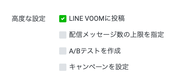 テキスト・スタンプ・写真・動画・クーポンのうち、いずれか1件を配信する場合のみ可能です。また、配信メッセージ数を指定していたり、A/Bテストを設定している場合は利用ができません。