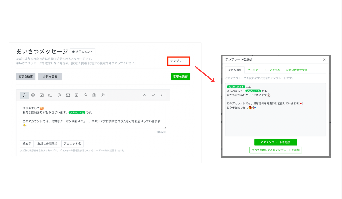 あいさつメッセージは、LINE公式アカウントの第一印象となる重要なメッセージです。