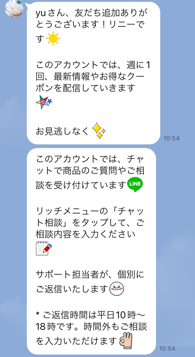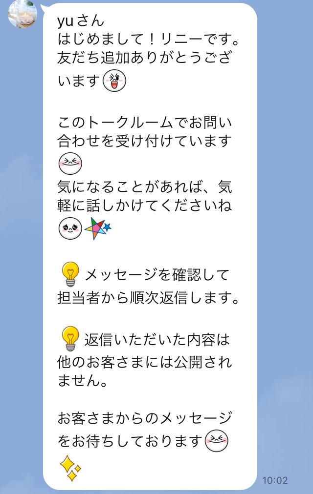 * ご返信時間は平日10時~18時です。時間外もご相談を入力いただけます(絵文字)