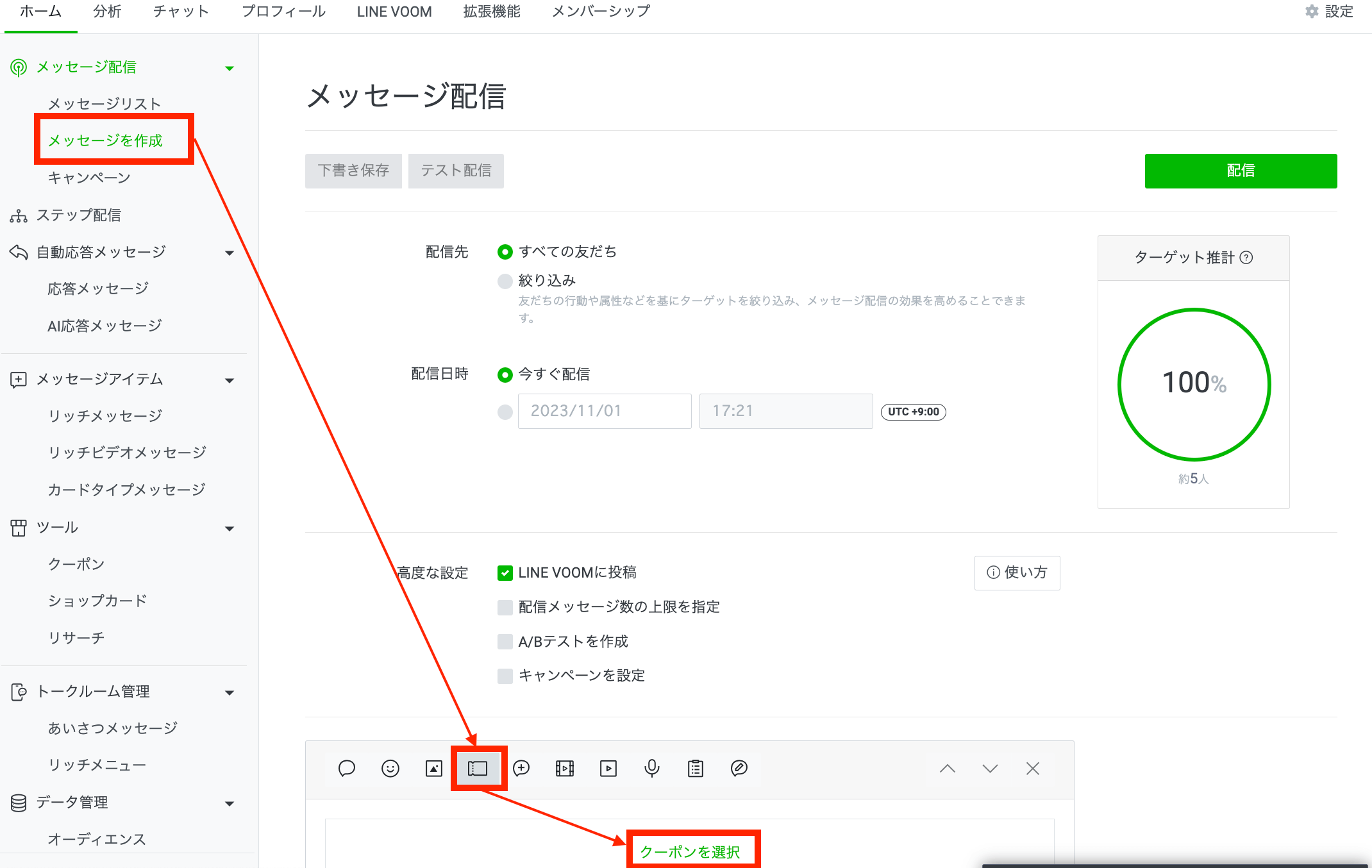 リッチメッセージでクーポンを配信する