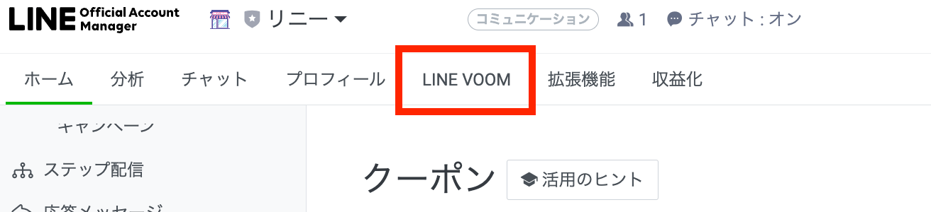 LINE公式アカウントの上部にある「LINE VOOM」を選択すると、VOOMの設定画面が開きます。