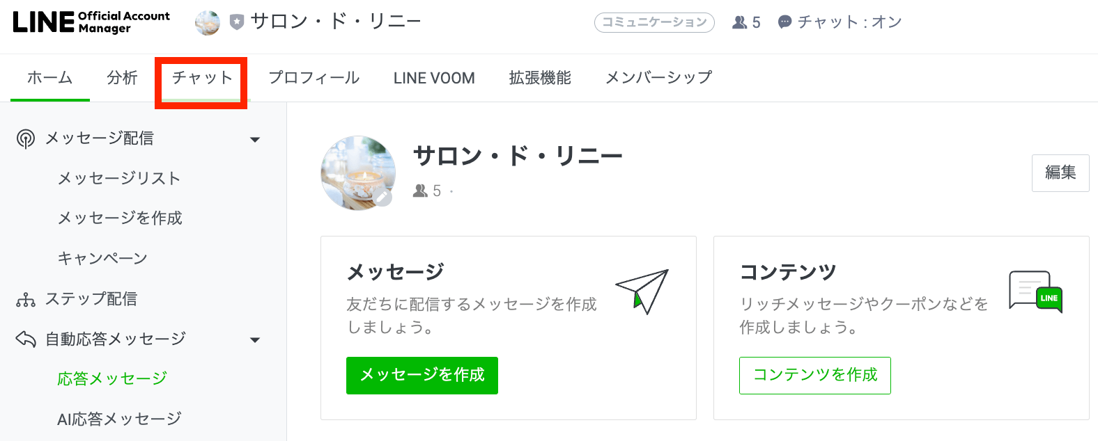 まず、LINE公式アカウントにログインし、該当のアカウントを選択します。