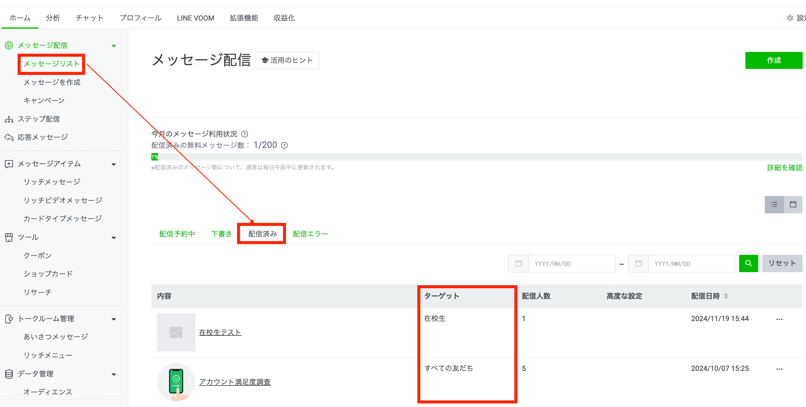 メッセージの作成・配信設定については以下の記事で詳しく紹介しています。