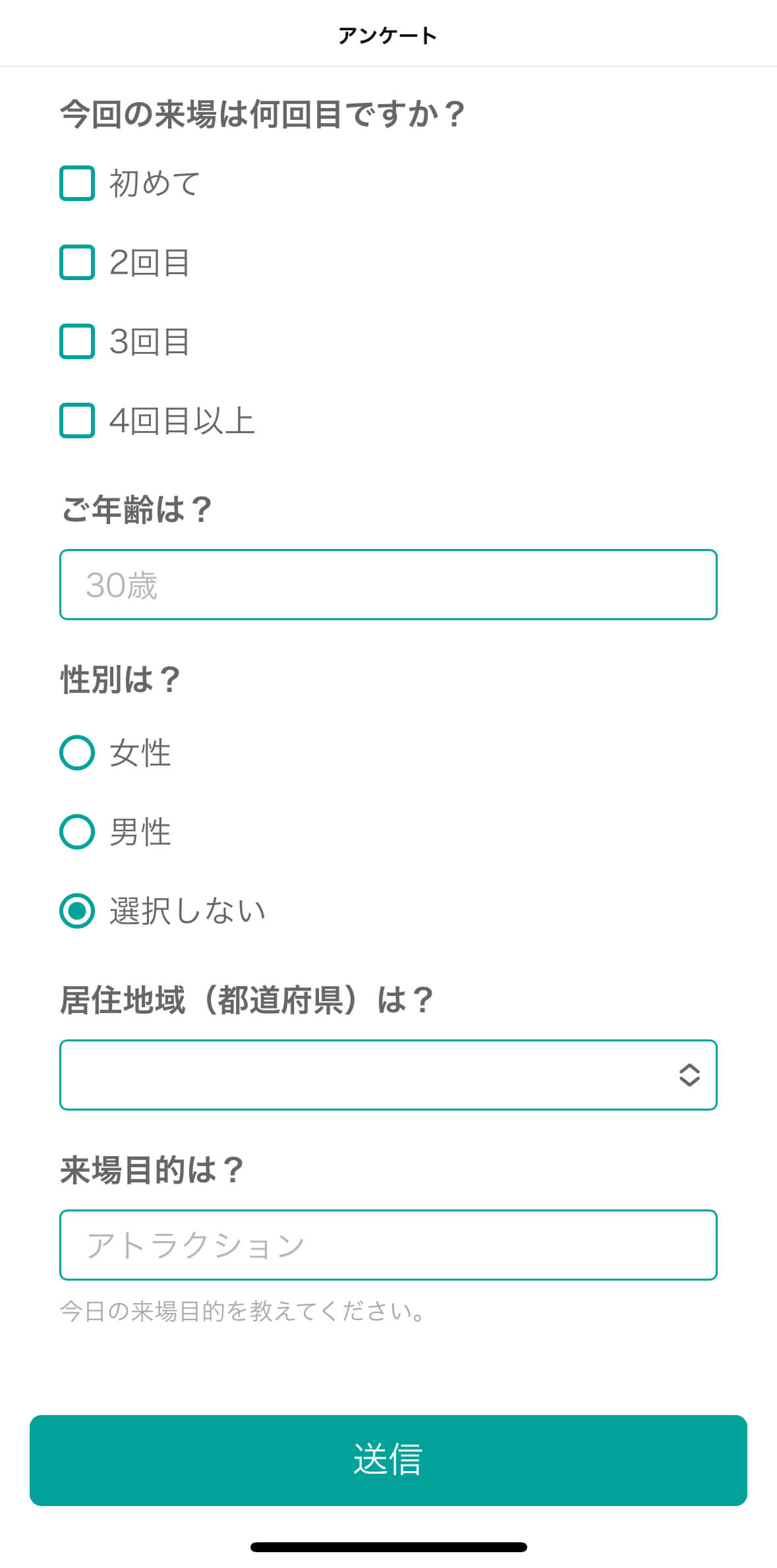 - アンケートで取得した情報(例:居住エリア、年齢、誕生日、性別、来場目的、好きな施設、興味があるイベント)