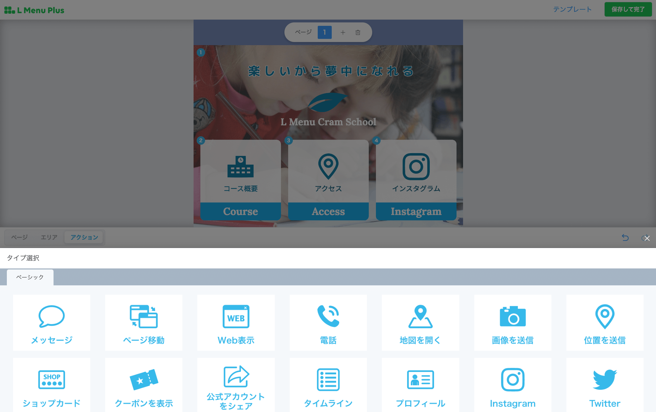 どのようなアクションが設定できるのかが一目でわかるため、リッチメニューの構成のヒントも得られます。