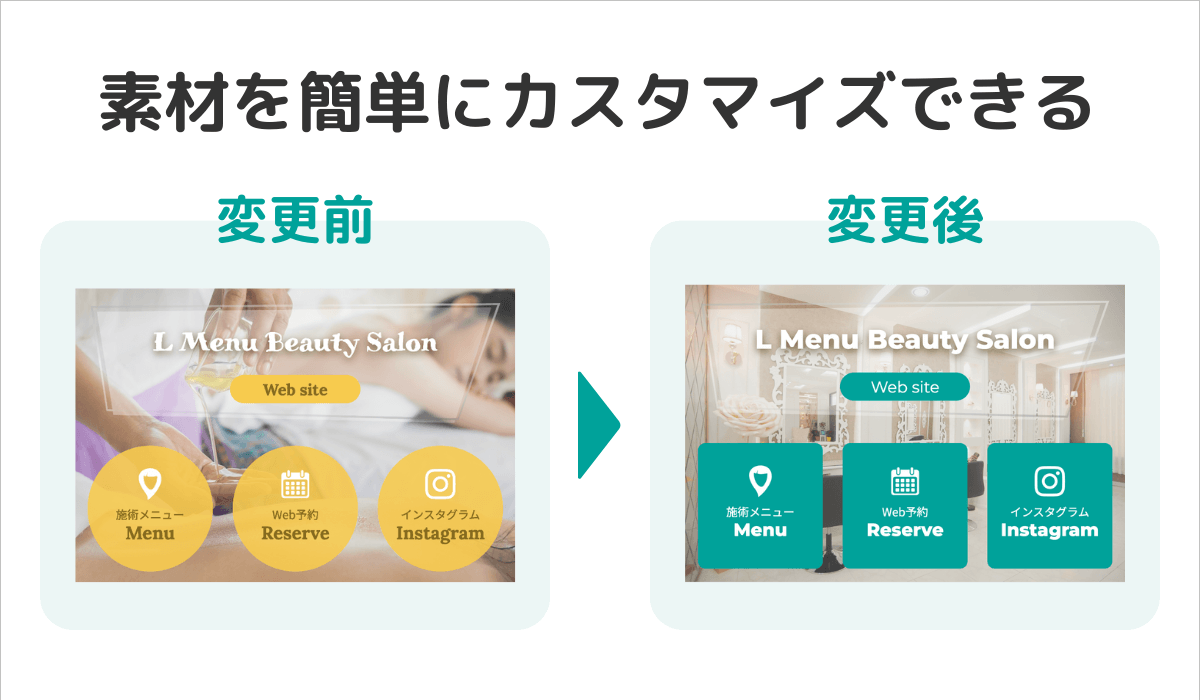 使いたいデザインテンプレートを選んだら、テキスト、ボタン、色などをアカウントのコンセプトに合わせて調整できます。
