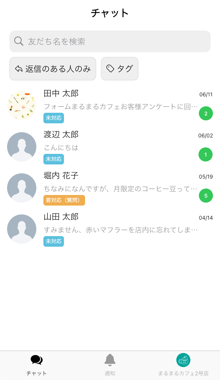 管理アカウントだけでなく、オペレーターアカウントでもメッセージの確認や返信が可能です。