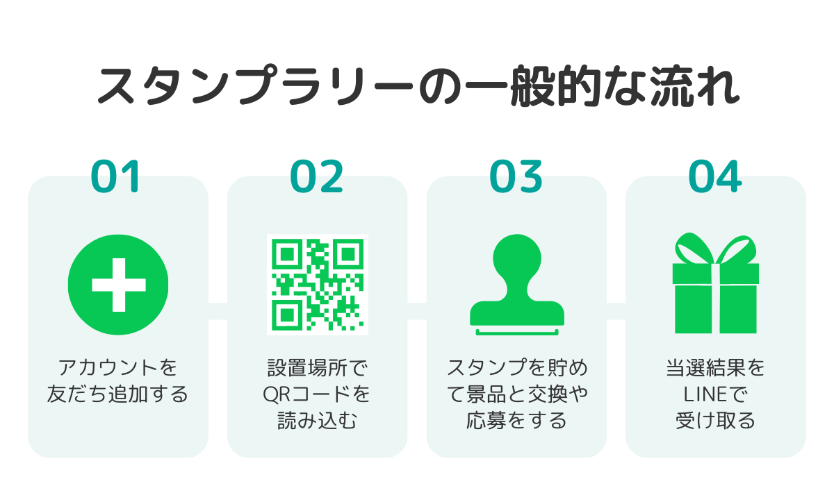 ユーザーがLINEでスタンプラリーを行う一般的な流れは以下です。