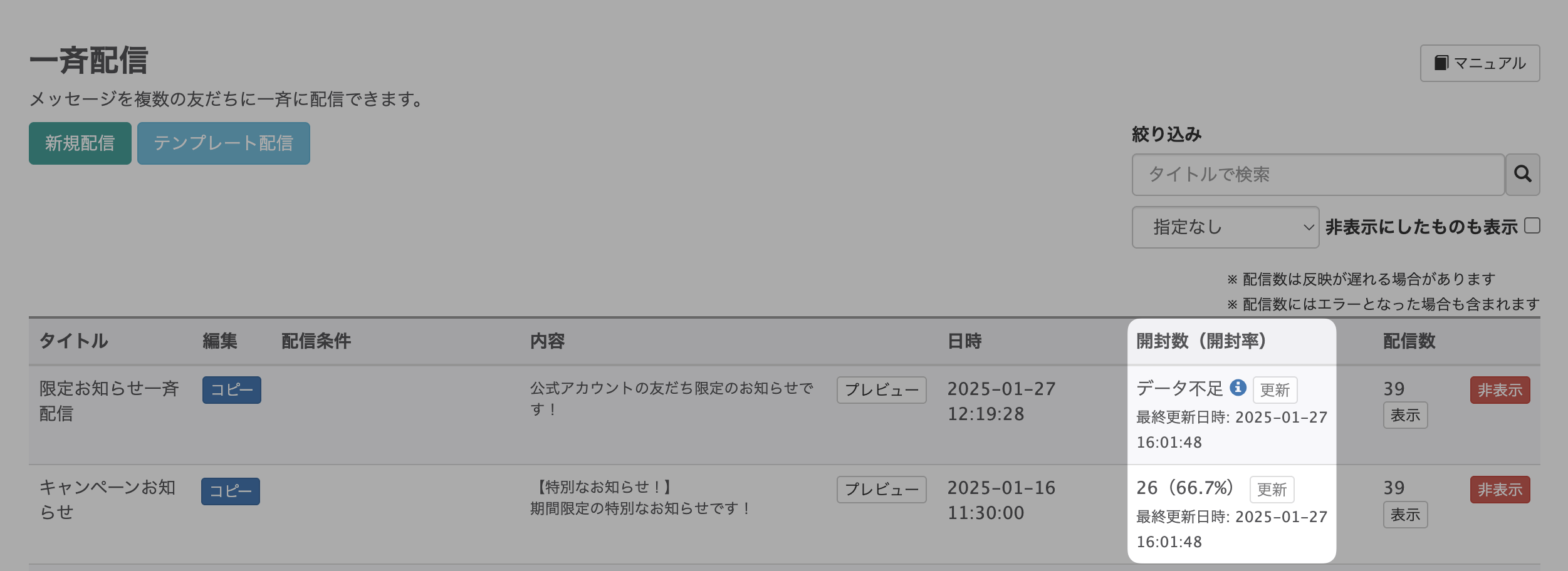 一斉配信機能で開封数 (開封率) を測定できるように(2月)