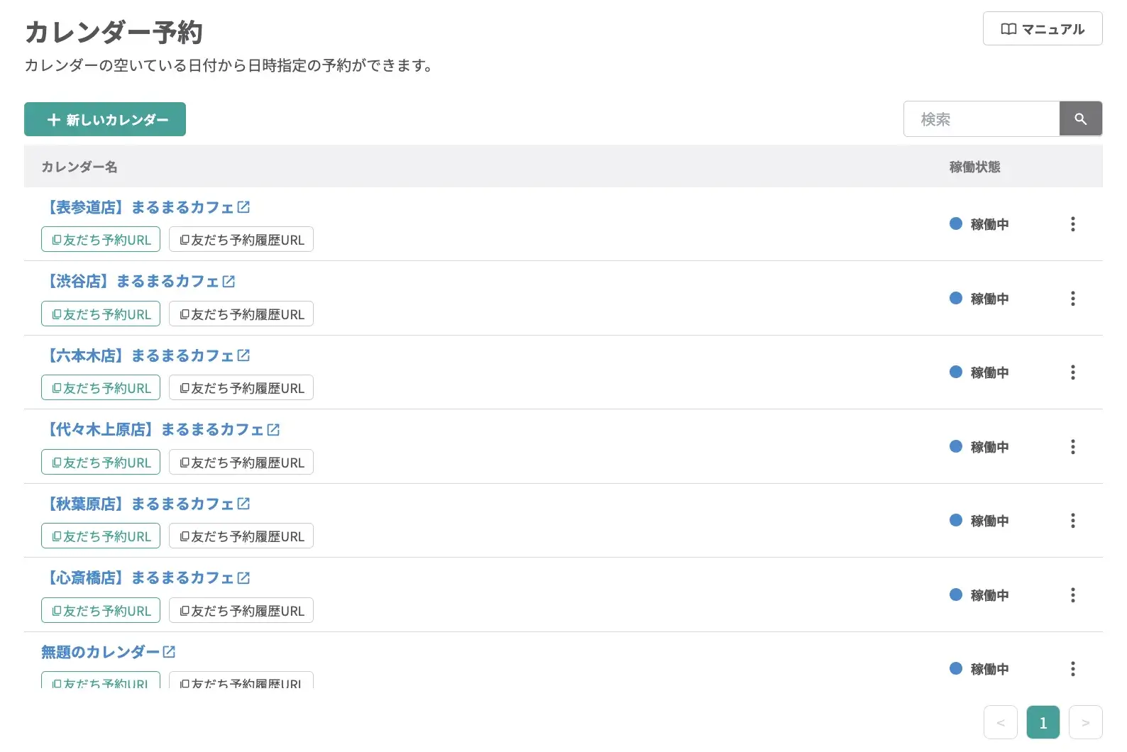 - 複数店舗で店舗ごとにカレンダーがある場合は、店舗ごとにオペレーター画面を発行して、自店舗の予約管理をする