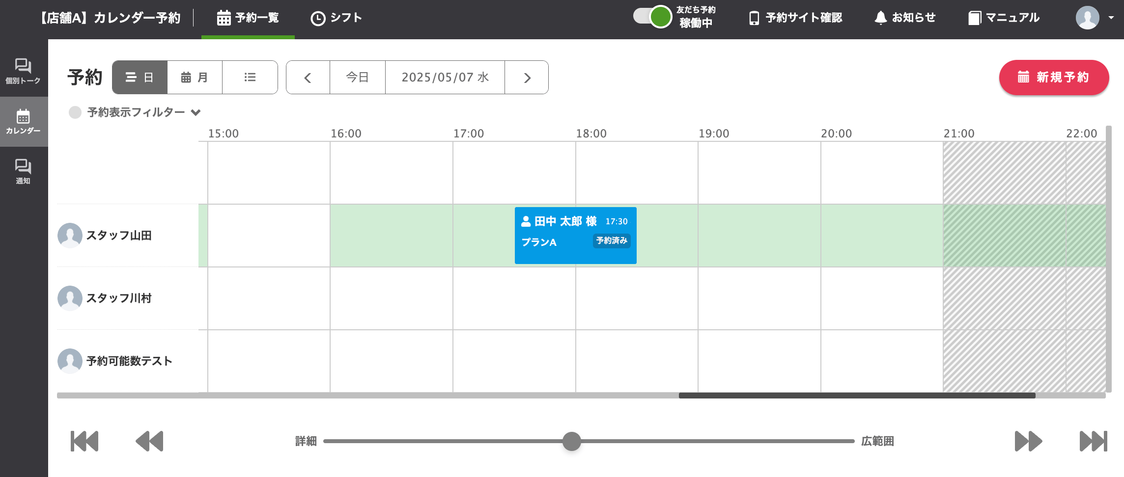 - 店舗スタッフがオペレーター画面で、店舗の予約管理をする