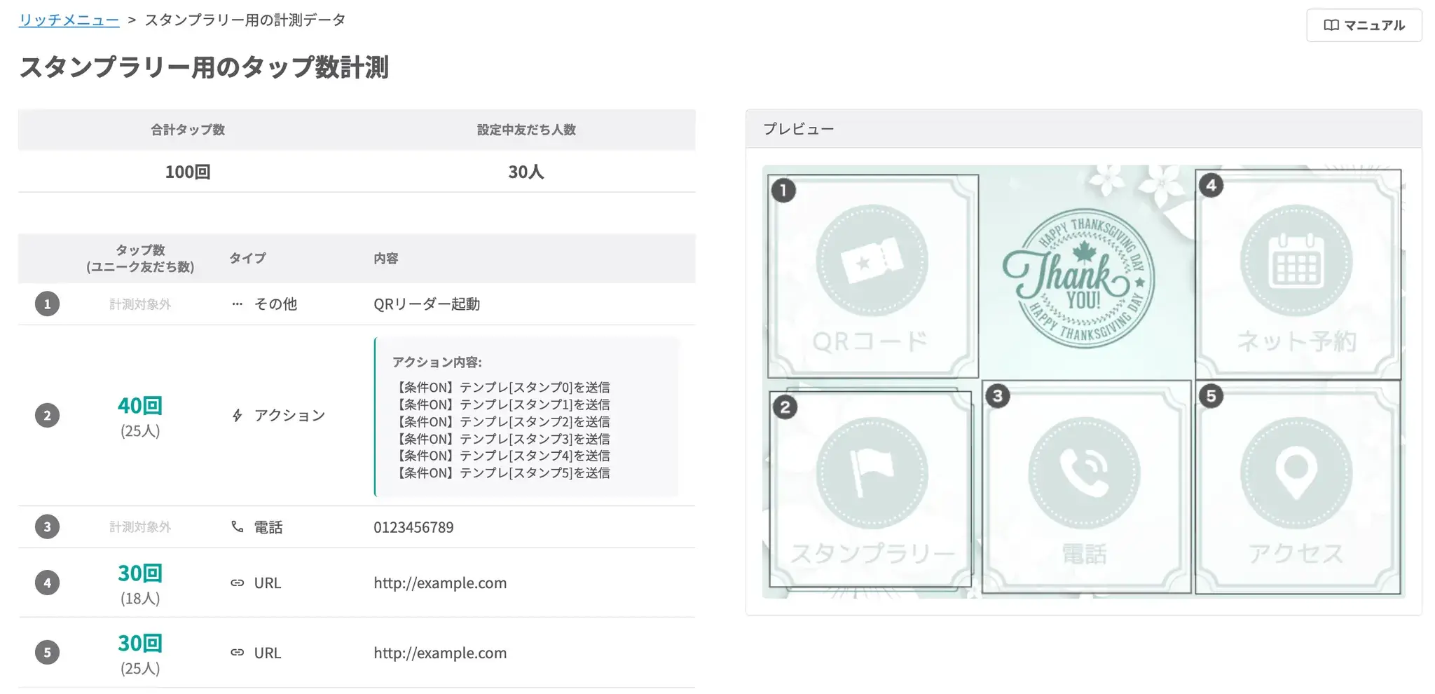 ※画像をアップロードして作成したリッチメニューのみ計測が可能です。