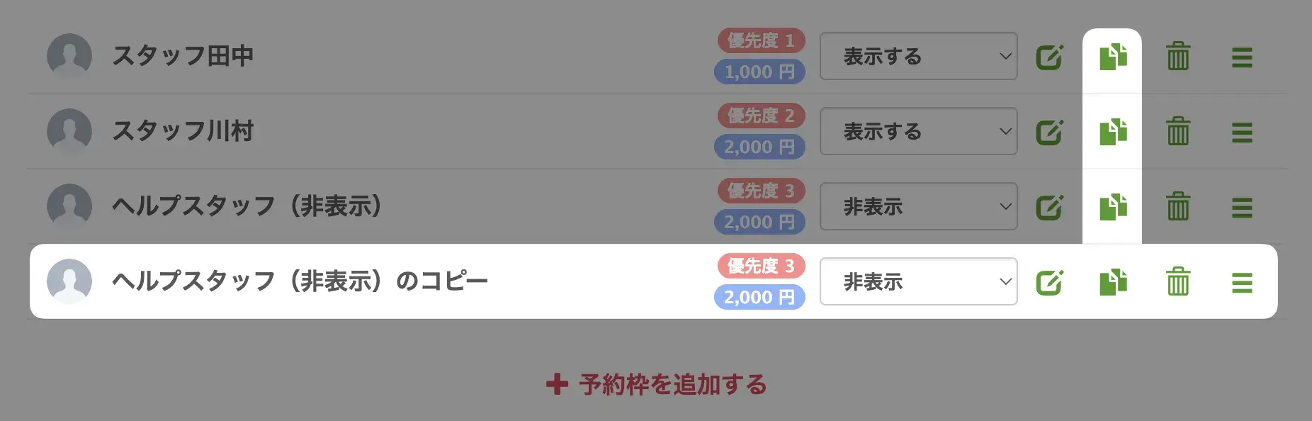 複数の類似した予約枠・コースを準備したい場合に効率よく作成できます。