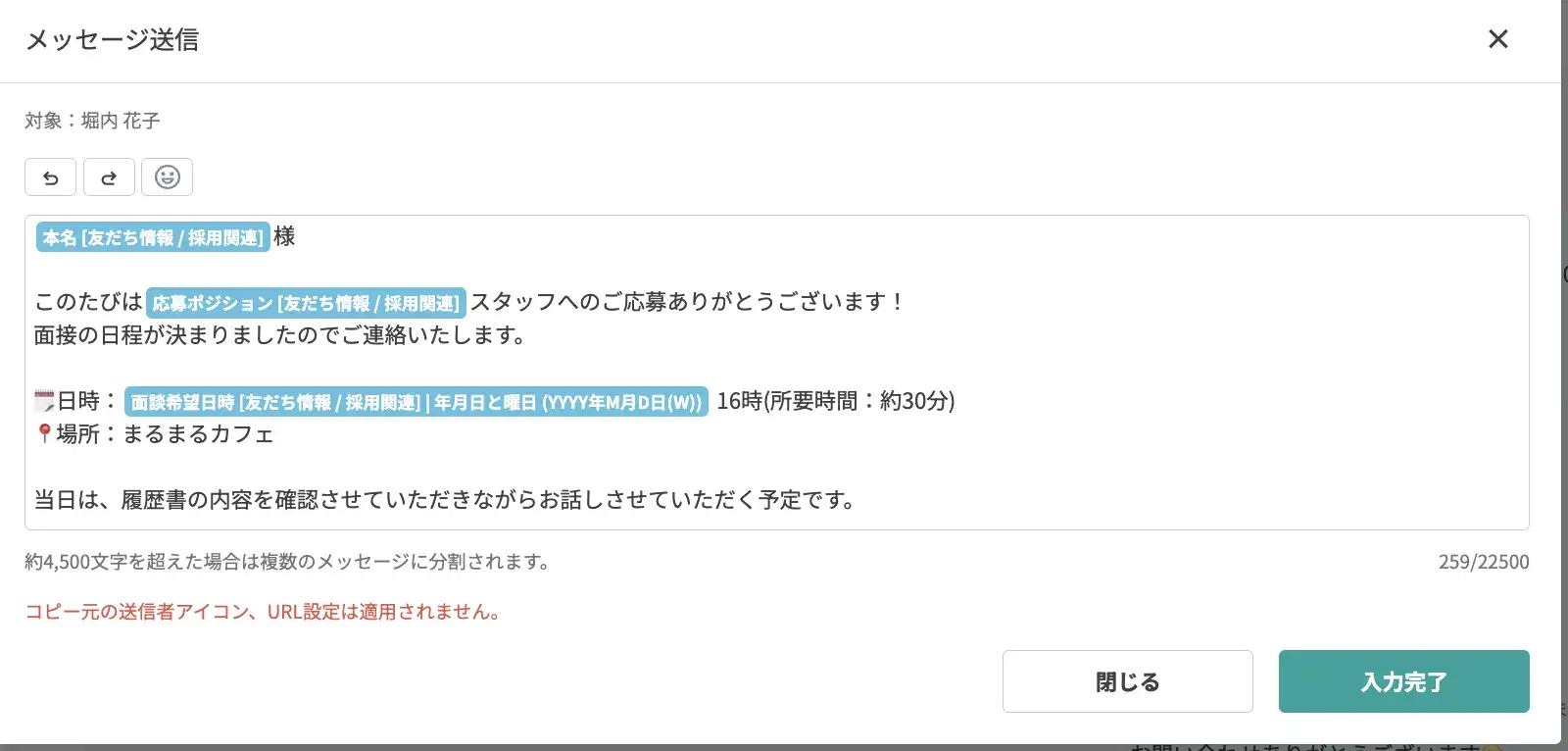 友だちごとに言い回しを調整したいメッセージを送るときに、効率よく作成できます。