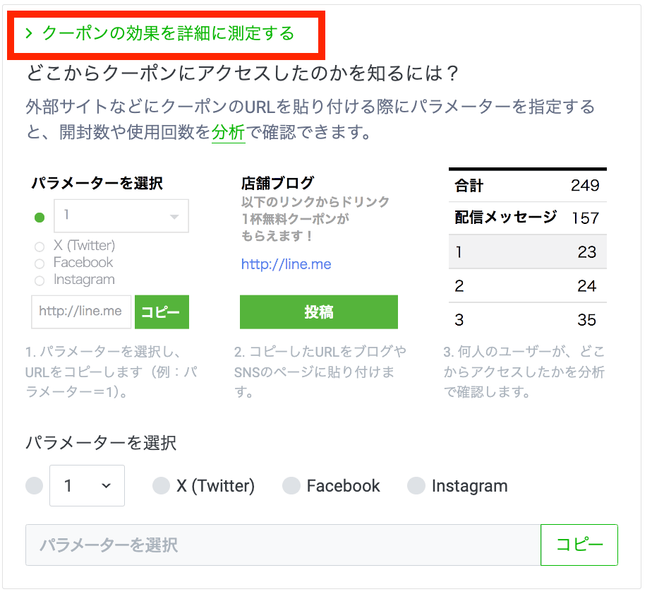 クーポンごとにパラメーターを設定することで、クーポンの掲載場所の効果測定も行えます。必要に応じて用いてください。