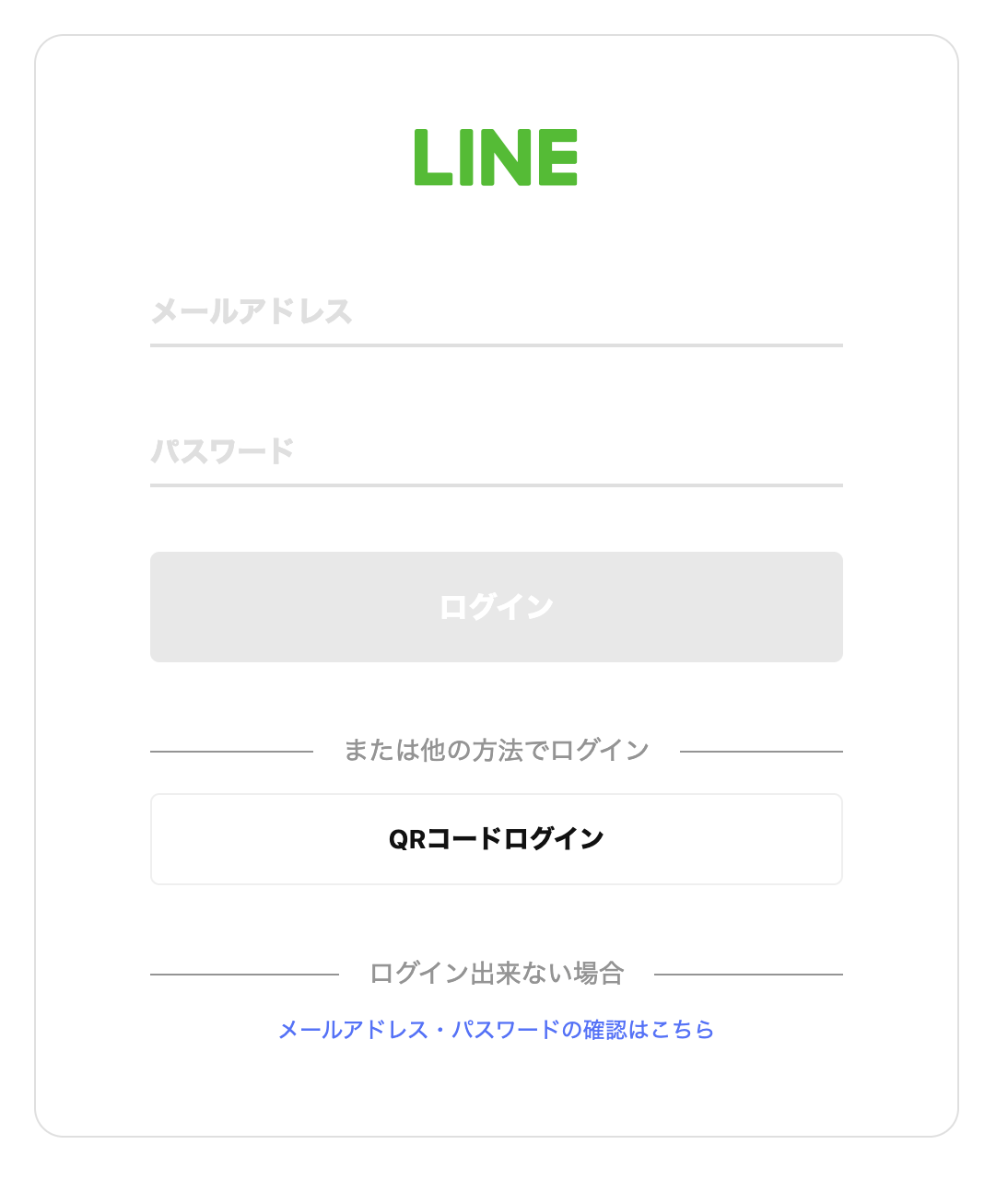未連携の場合は、右側のアイコンをクリックします。LINEアカウントへの連携画面が表示されるので、メールアドレスもしくはQRコードでログインして連携を完了させます。
