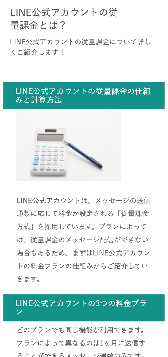 LINE公式アカウントは、メッセージの送信通数に応じて料金が設定される「従量課金方式」を採用しています。プランによっては、従量課金のメッセージ配信ができない場合もあるため、まずはLINE公式アカウントの料金プランの仕組みをご紹介します。