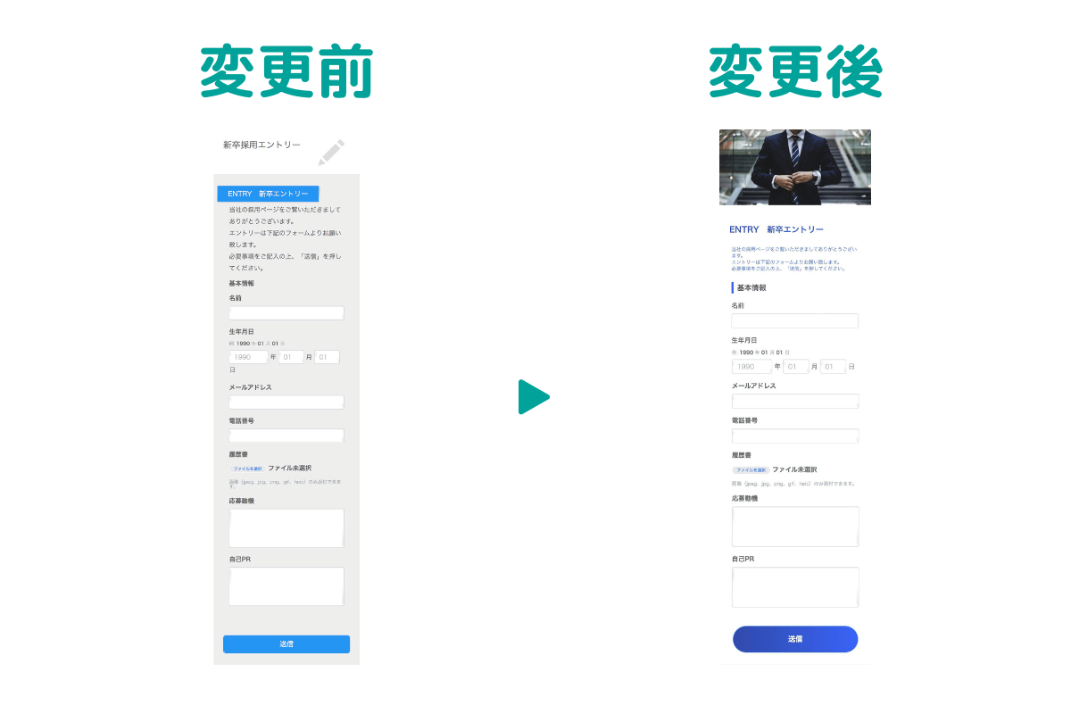 カラーを変えたり画像を挿入することで、見やすさの改善やブランドイメージに沿ったフォーム作成が可能です。