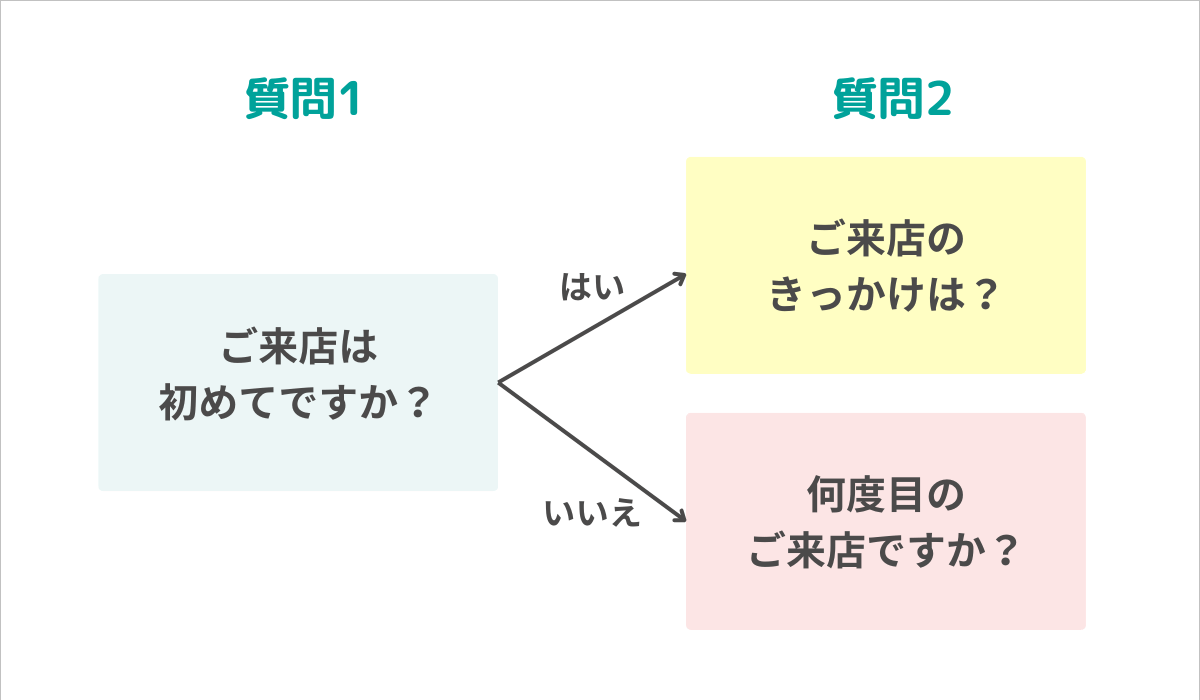 友だちの回答に応じて質問を分岐させることができます。質問の出し分けを行うことで、友だちの状況に合わせて適切な情報を細かく入手できます。