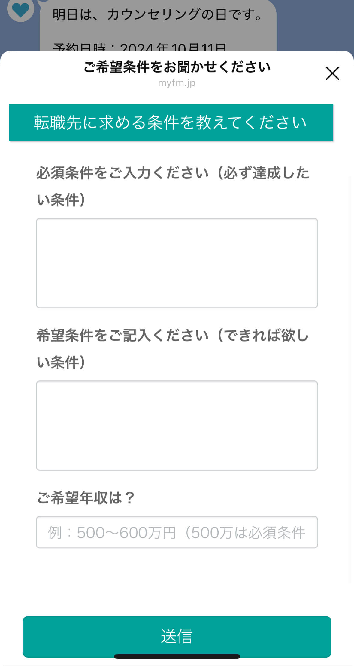 会員登録には回答フォームでユーザーの情報を収集し、条件に合う方を絞り込んで、マッチする案件の紹介を実施しています。