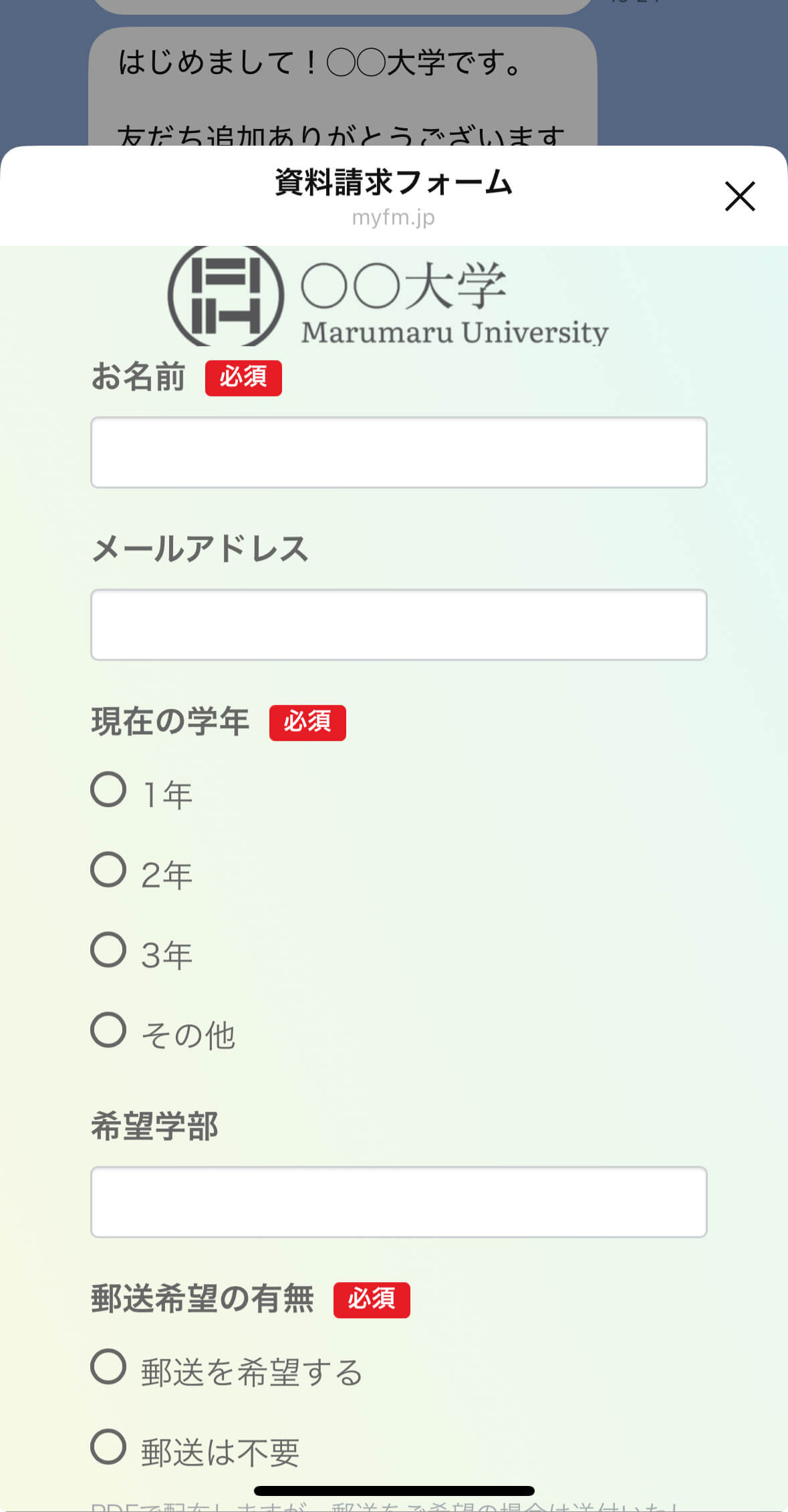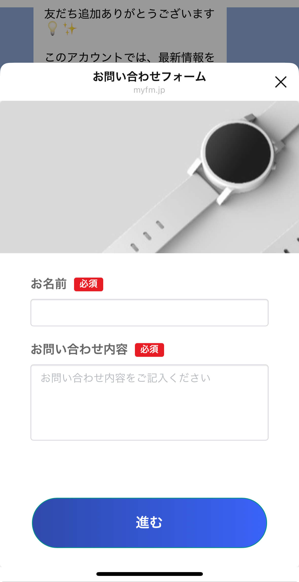 お問い合わせフォームとしても活用できます。ユーザーは回答をLINEで確認できるので、利便性の向上につながります。