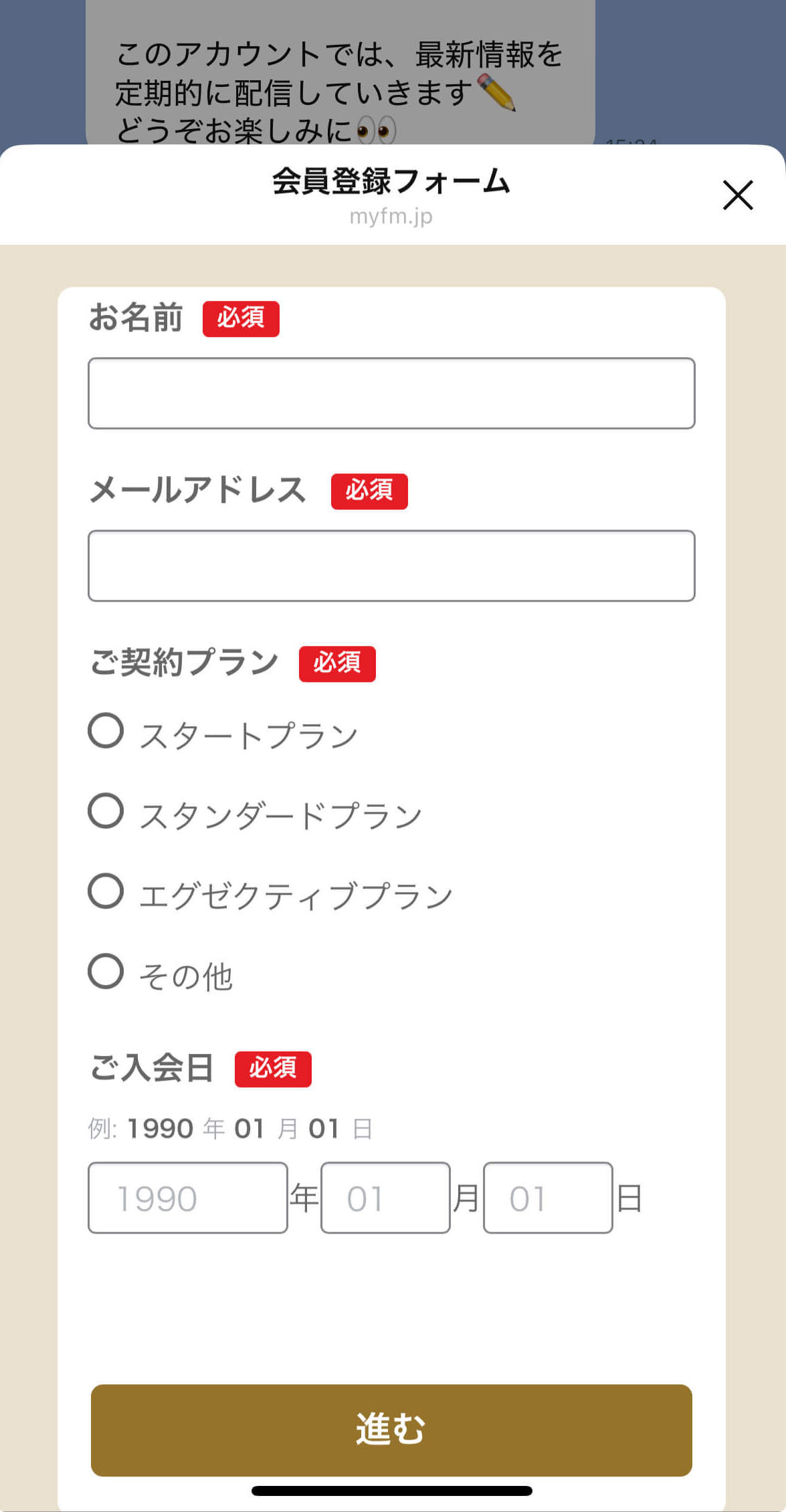 回答フォーム機能を利用して、LINE内で会員登録を実施