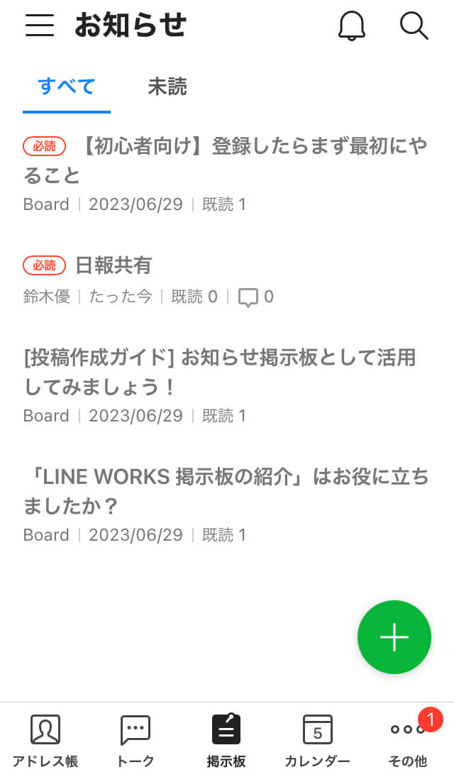 トークでは見逃してしまいそうな情報を、掲示板にまとめて共有することができます。メンバーごとに掲示板の権限を変えることも可能です。