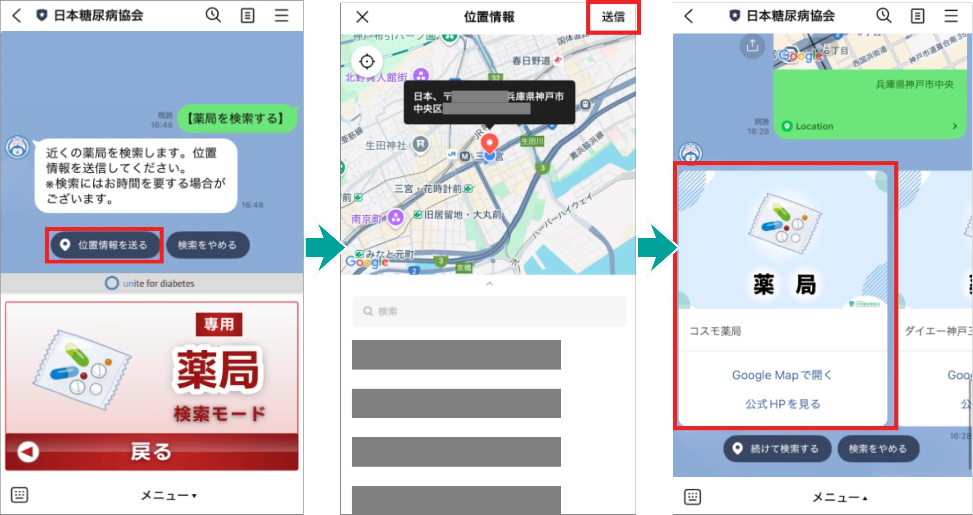 まず、ご自身で医療機関や薬局に薬を受け取りに行ける方には、位置情報を送っていただき、その位置情報をもとに半径10キロ以内の病院や診療所、調剤薬局を、距離の近い順に自動で返信する仕組みを構築しました。