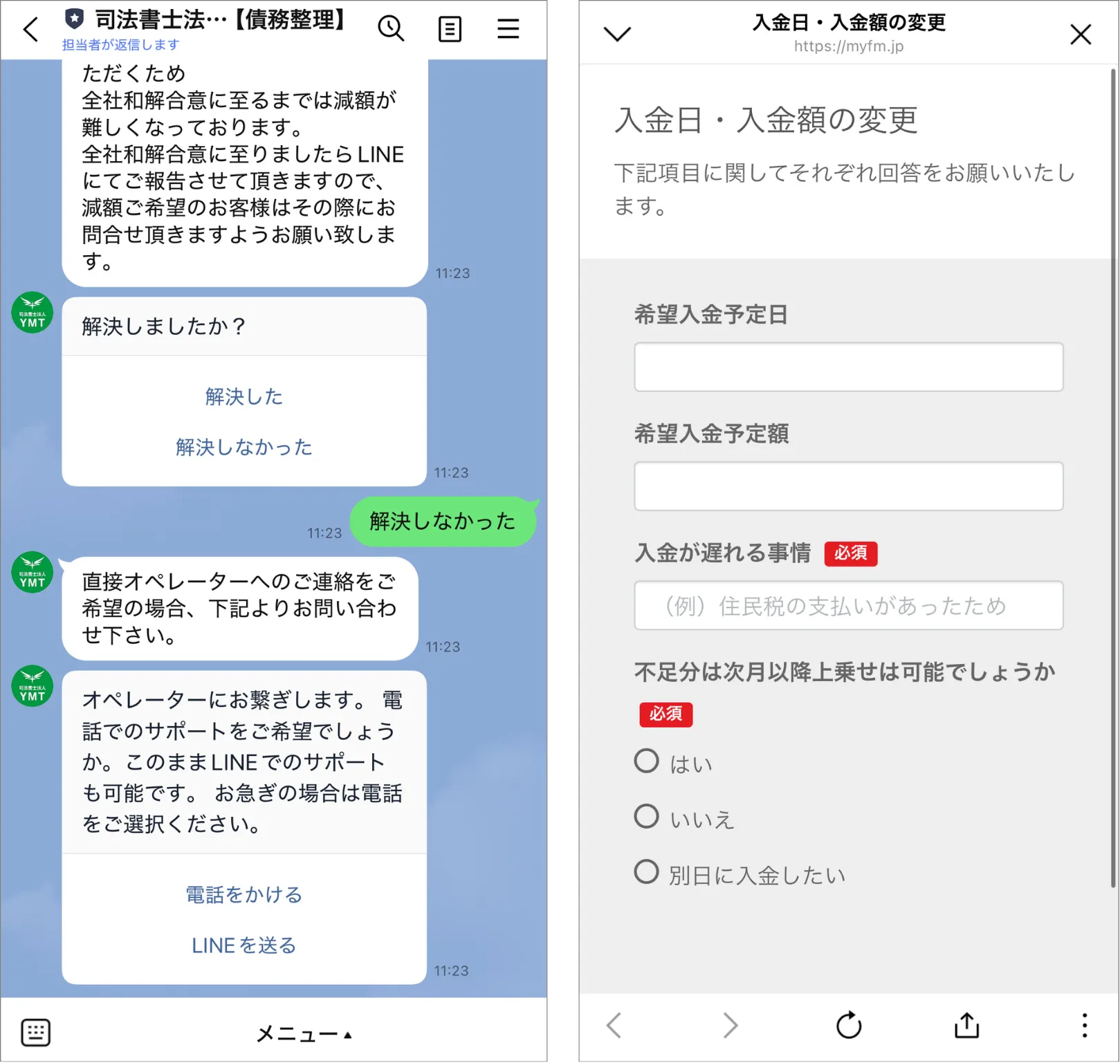 例えば、入金の金額調整に関するお問い合わせはオペレーターが対応しますが、その際には入金日・金額・ご事情など、必ず確認すべき項目があります。また、「日付を調整したいのか、金額を調整したいのか」など、お客様によって何を調整したいのかが異なるので、それらを入力してもらうフォームを送付しています。